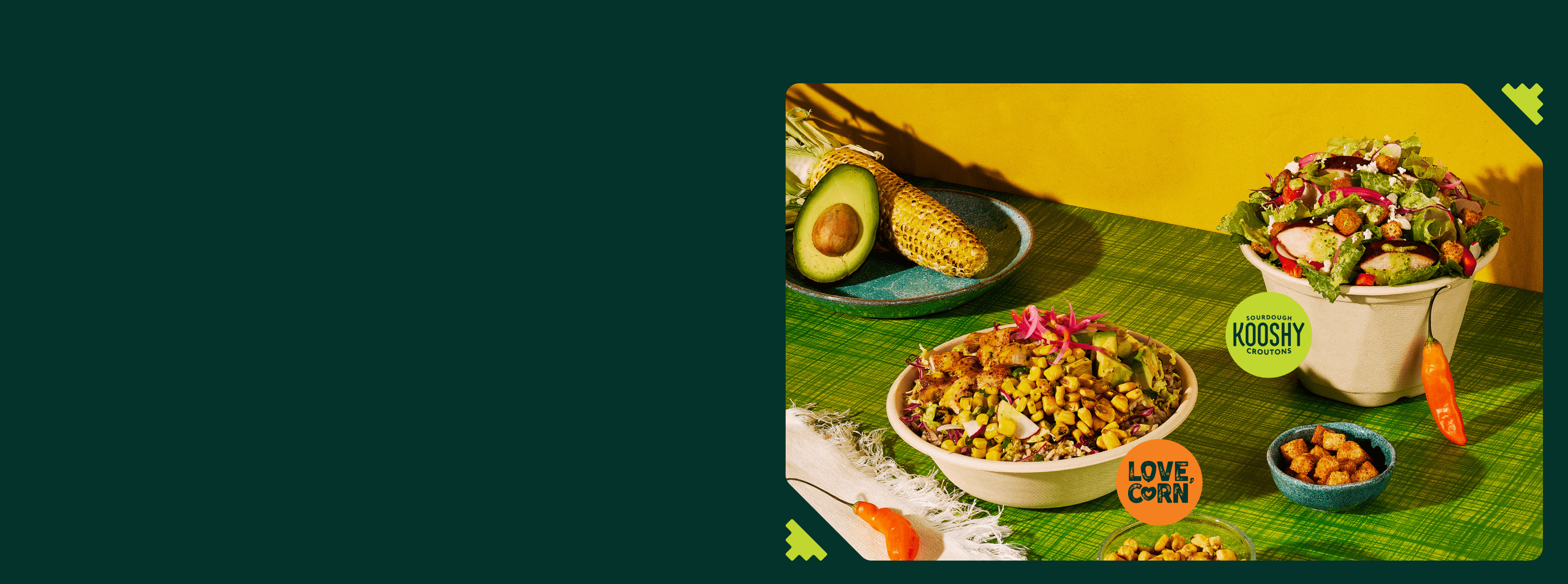 Inspired by the iconic Aji peppers, our seasonal dressings bring citrus, mild heat, and brightness to every bowl.